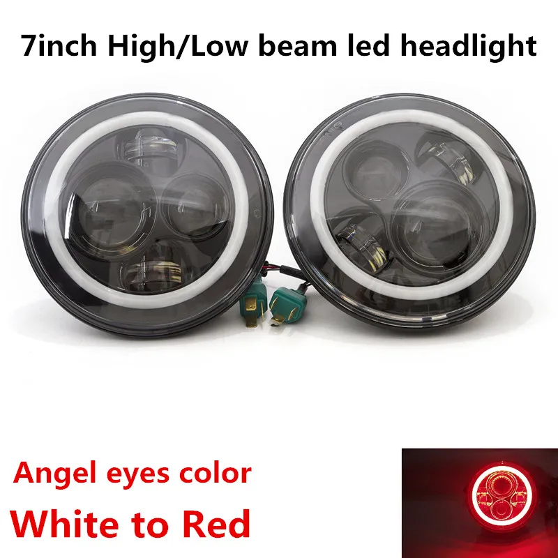 DOT Approve 7inch LED Auto Headlight 7'' LED Driving Headlamp Red Halo Ring for Jeep Wrangler Motor